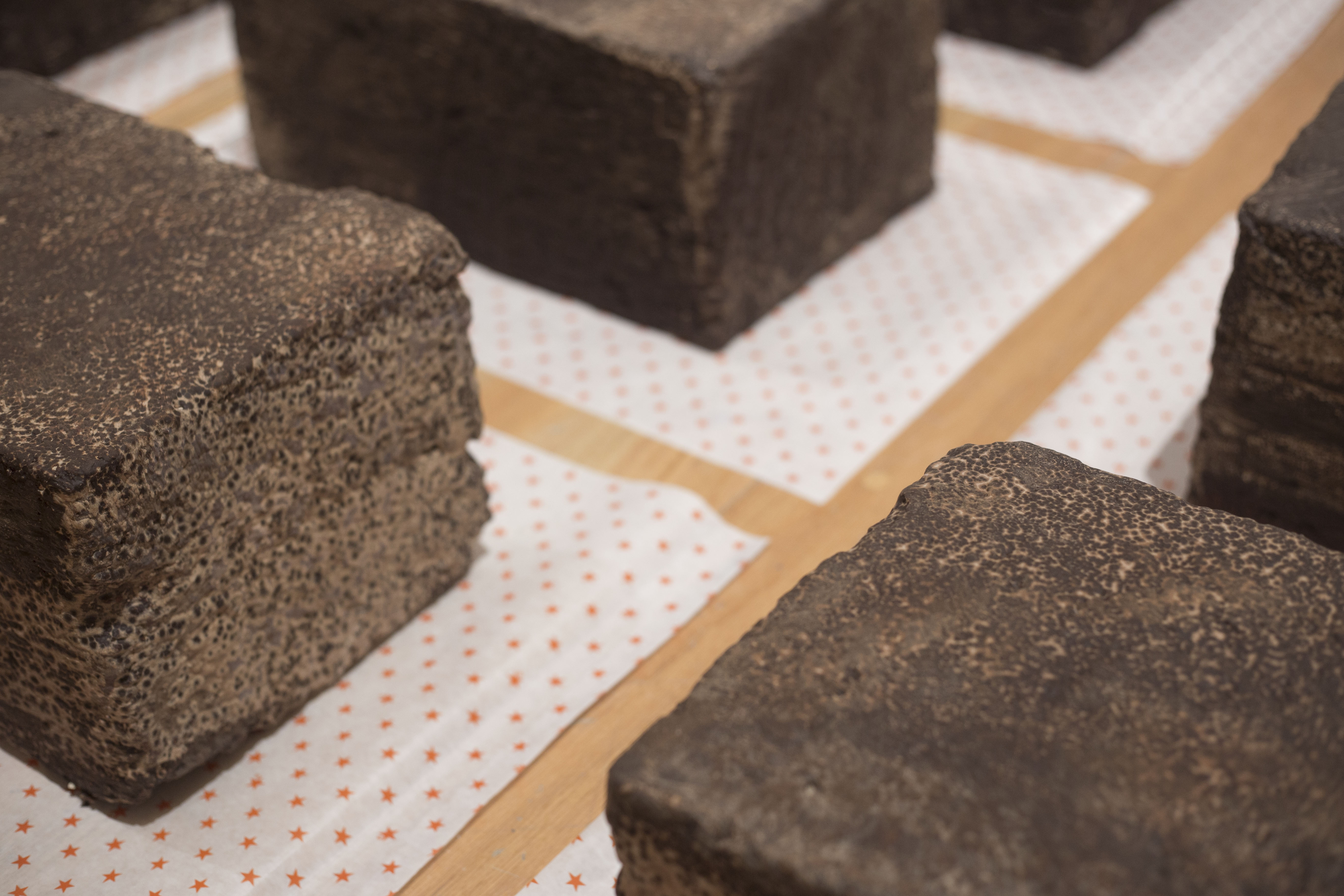 Es una obra compuesta de 48 bloques de piedra sillar, que imitan a los populares brownies. Estas piedras muy usadas desde tiempos coloniales en la ciudad norteña de Monterrey, México, tienen un baño de chocolate gourmet y cada una ha sido colocada sobre su respectivo papel encerado.